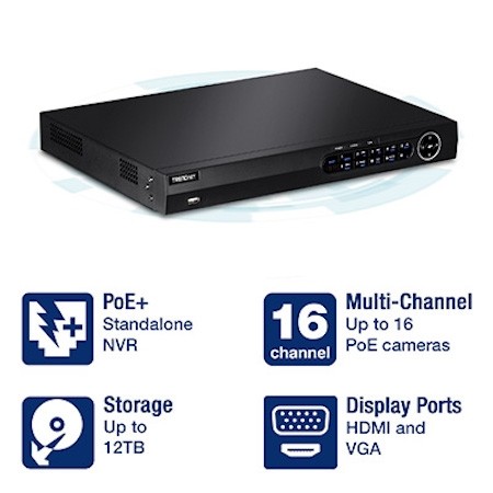 ضبط ویدئو از 16 کانال | امکان مدیریت تا شانزذه دوربین TRENDnet | پشتیانی از ۲ هارد با ظرفیت بیش از ۱۲ ترابایت