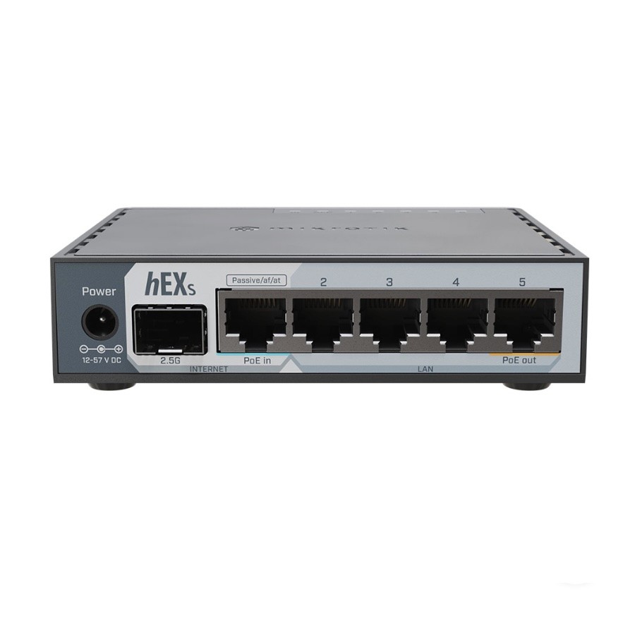 در بخش اترنت پنج عدد پورت با سرعت 10/100/1000 Mbps؛ پورت شماره ۱ قابلیت PoE‑in با استاندار 802.3af/at و پورت شماره ۵ قابلیت PoE‑out با توان 57V 0.5A دارد.